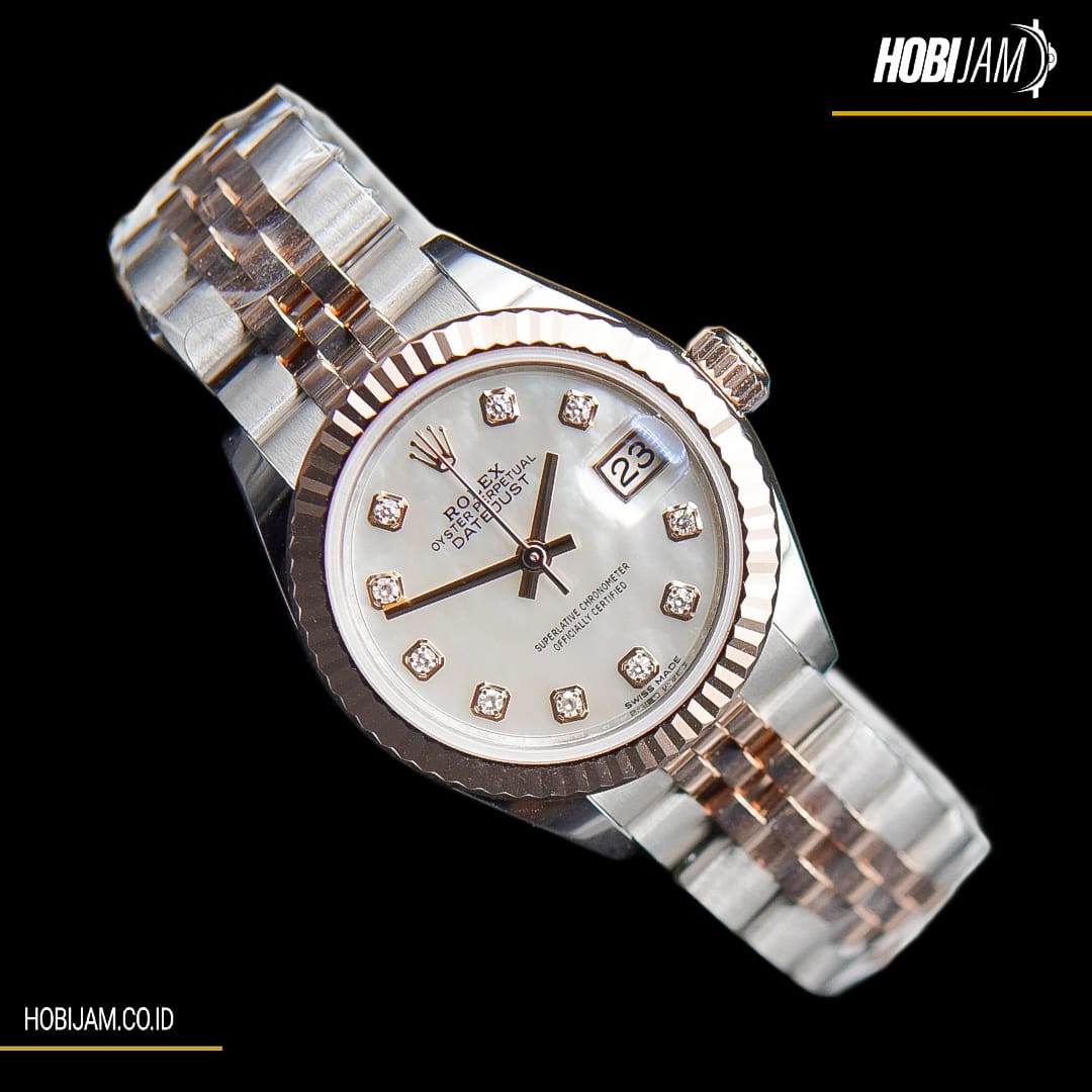 Rolex Date Just Mop Diamond Twotone Rose Gold 28mm