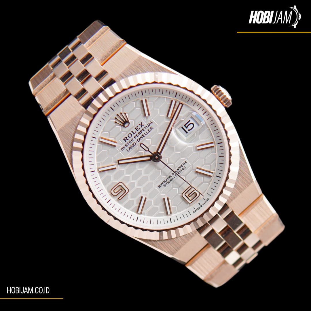 Brand : Rolex Type : Land Dweller Year : 2025 Reference : 127335 Case Material : Rose Gold Diameter : 40mm Movement : Automatic Gender : Men Others : Fullset box and paper