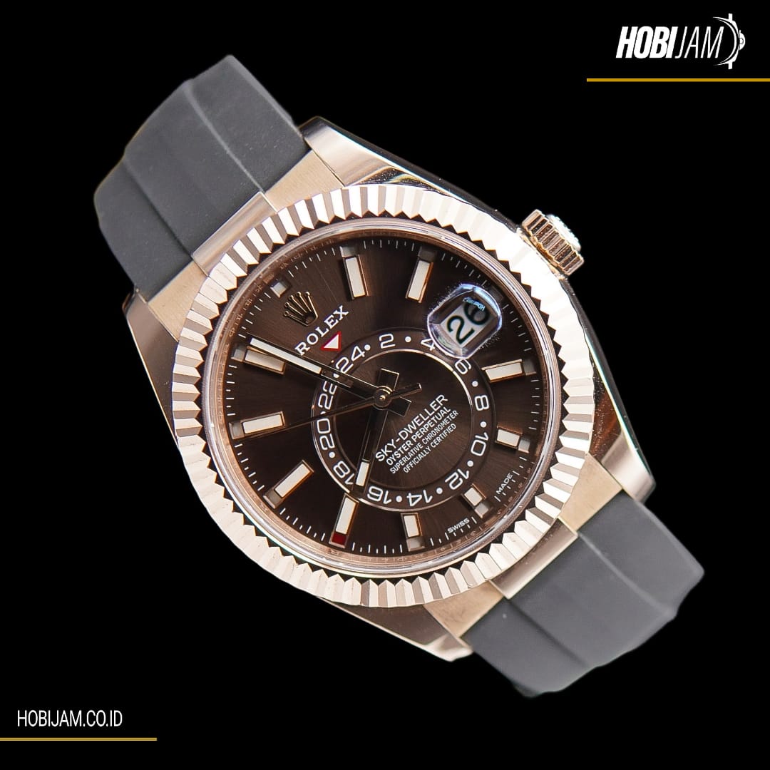 Brand : Rolex Type : Sky Dweller Year : 2023 Reference : 326235 Case Material : Rosegold Diameter : 42mm Movement : Automatic Gender : Men Others : Fullset box and paper